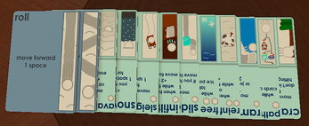 a little errata: whenever a card says "when you hit an obstacle" you ignore the obstacle's effect (except the lake's, unless with freeze). i'll be updating the rulebook once the jam ends